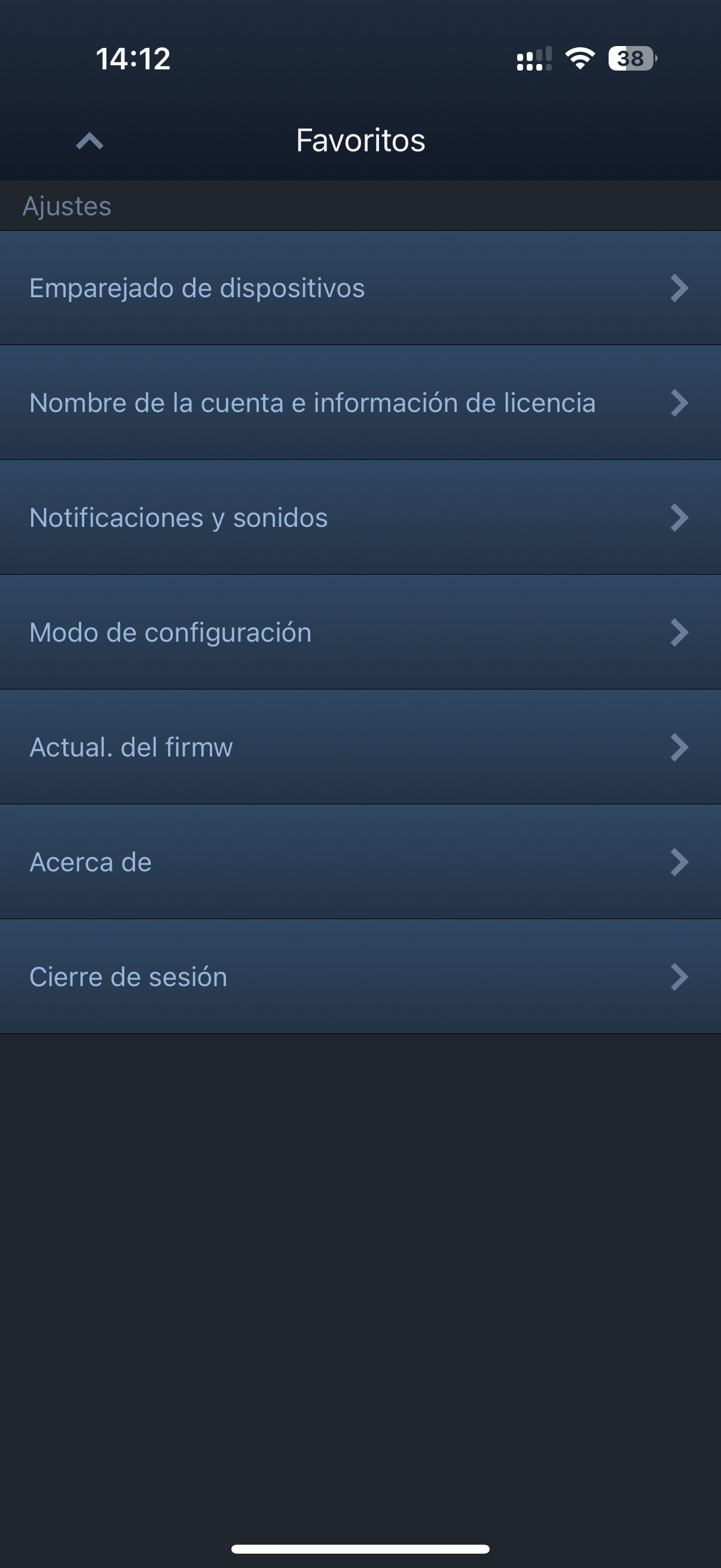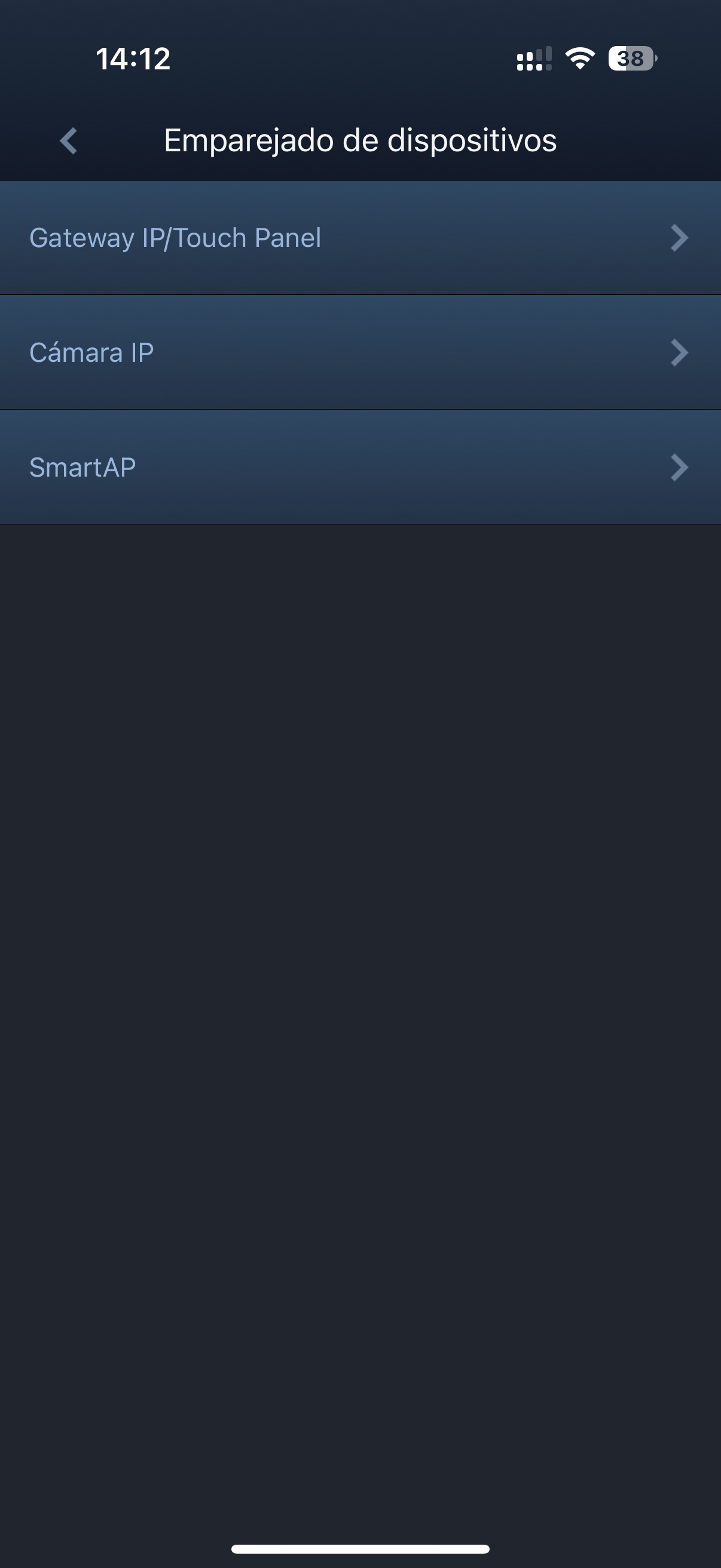 Se pulsa en el ángulo en la esquina superior izquierda y sale la siguiente pantalla. Aqui hay que pulsar en "Emparejado de dispositivos.