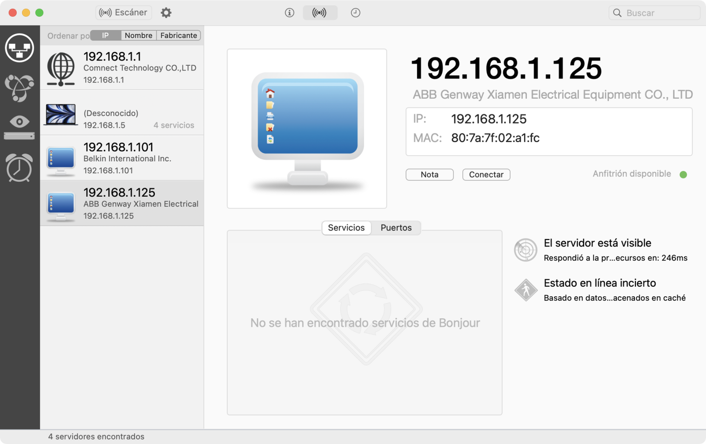 El gateway es el que pone ABB Genway Xiamen Electrical. De aquí se obtiene su IP que se pone en el navegador.
