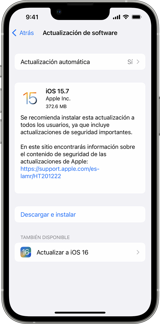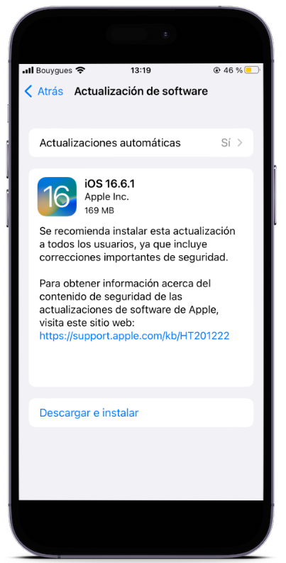A veces, se da el caso de que hay dos actualizaciones disponibles, una para los que quieren cambiar al nuevo sistema operativo y otra para los que prefieren quedarse en el que están pero actualizar la seguridad de su iPhone. En ese caso la pantalla será como esta: