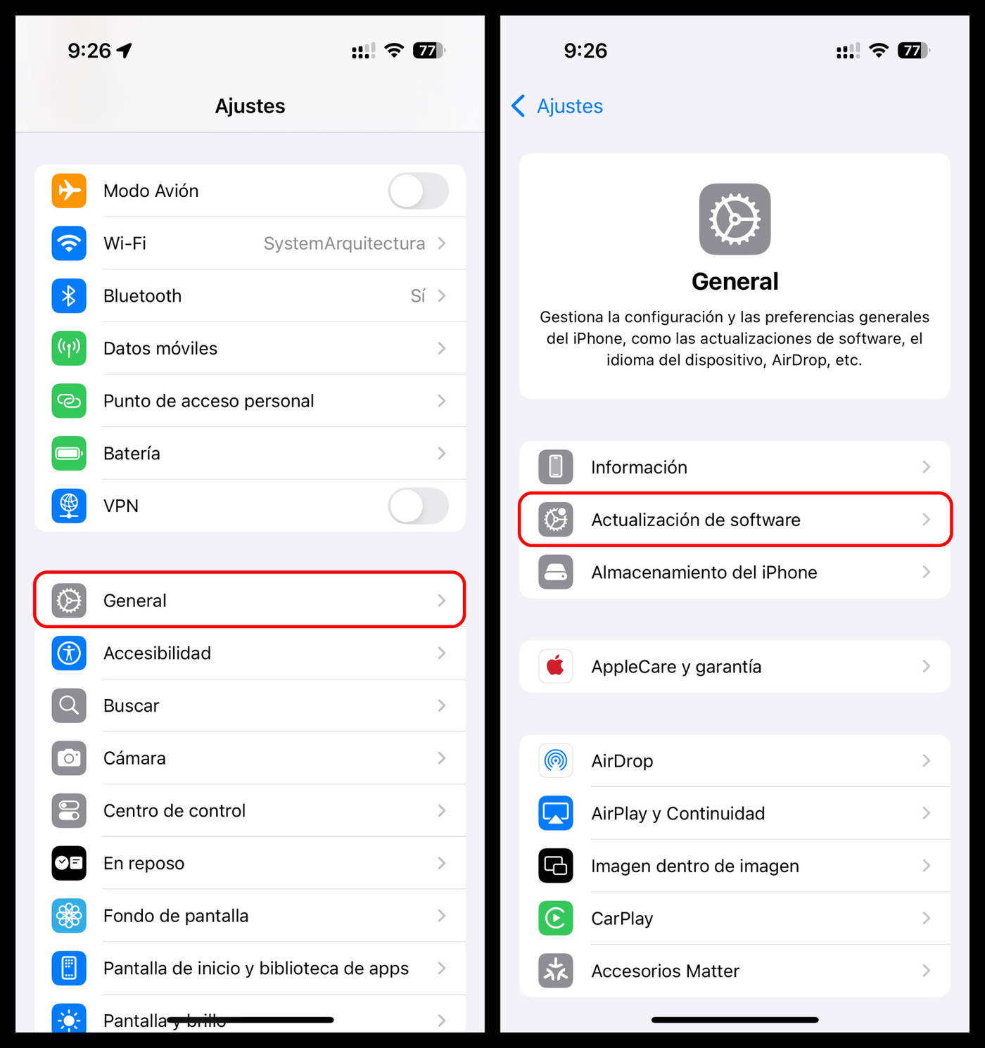 Cuando hay una actualización para el iPhone hay que ir a Ajustes que es el icono de la rueda.![]()