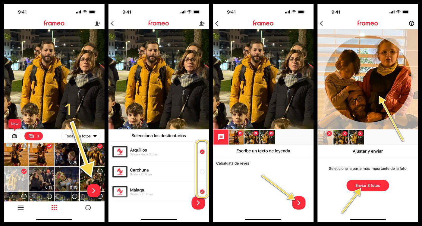 - Luego selecciona a qué marcos quieres enviar las fotos.